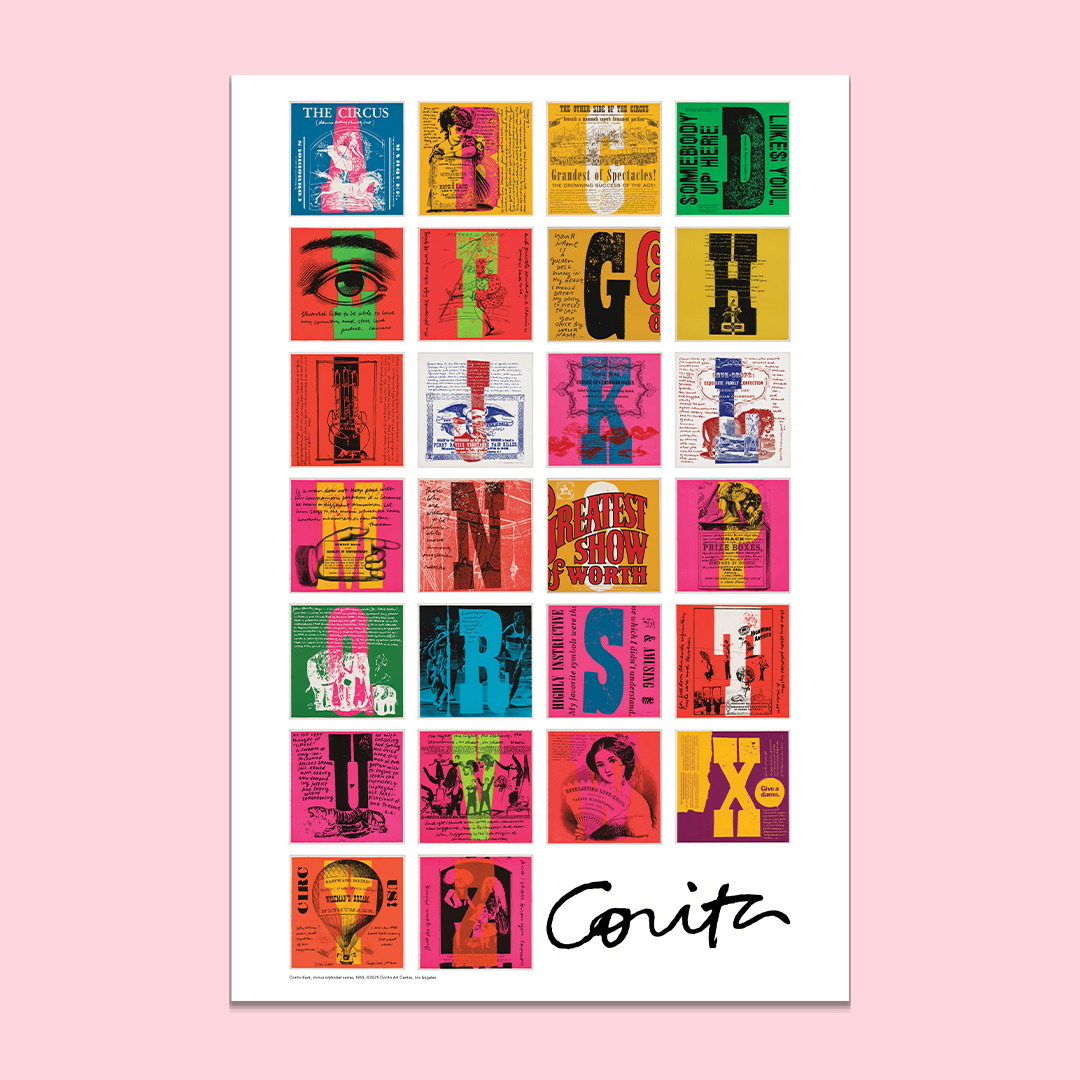 Step right up to joy and color with this special limited-edition circus alphabet poster, featuring Corita’s beloved 1968–1969 series. Produced in collaboration with the master printers at Typecraft in Pasadena, this vibrant piece celebrates Corita’s playful exploration of language, typography, and wonder, transforming the alphabet into a parade of hope and imagination.